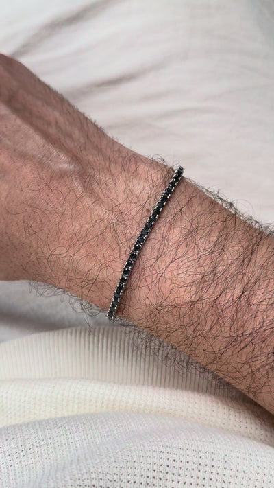 925纯银黑曜石网球手链 – Ansbert – 中号款